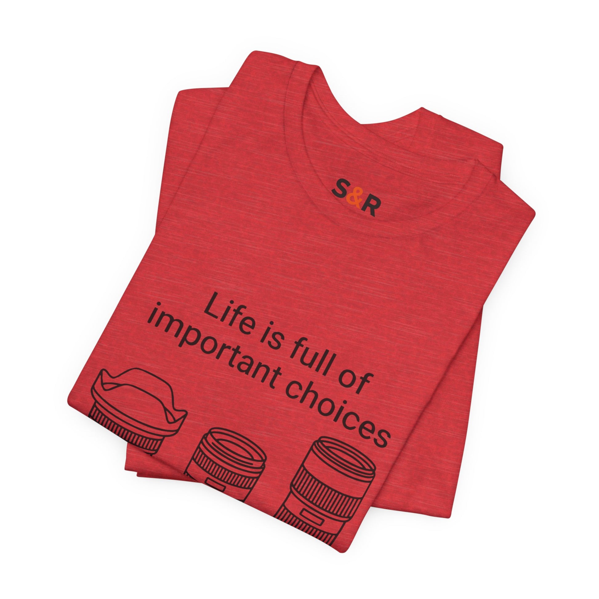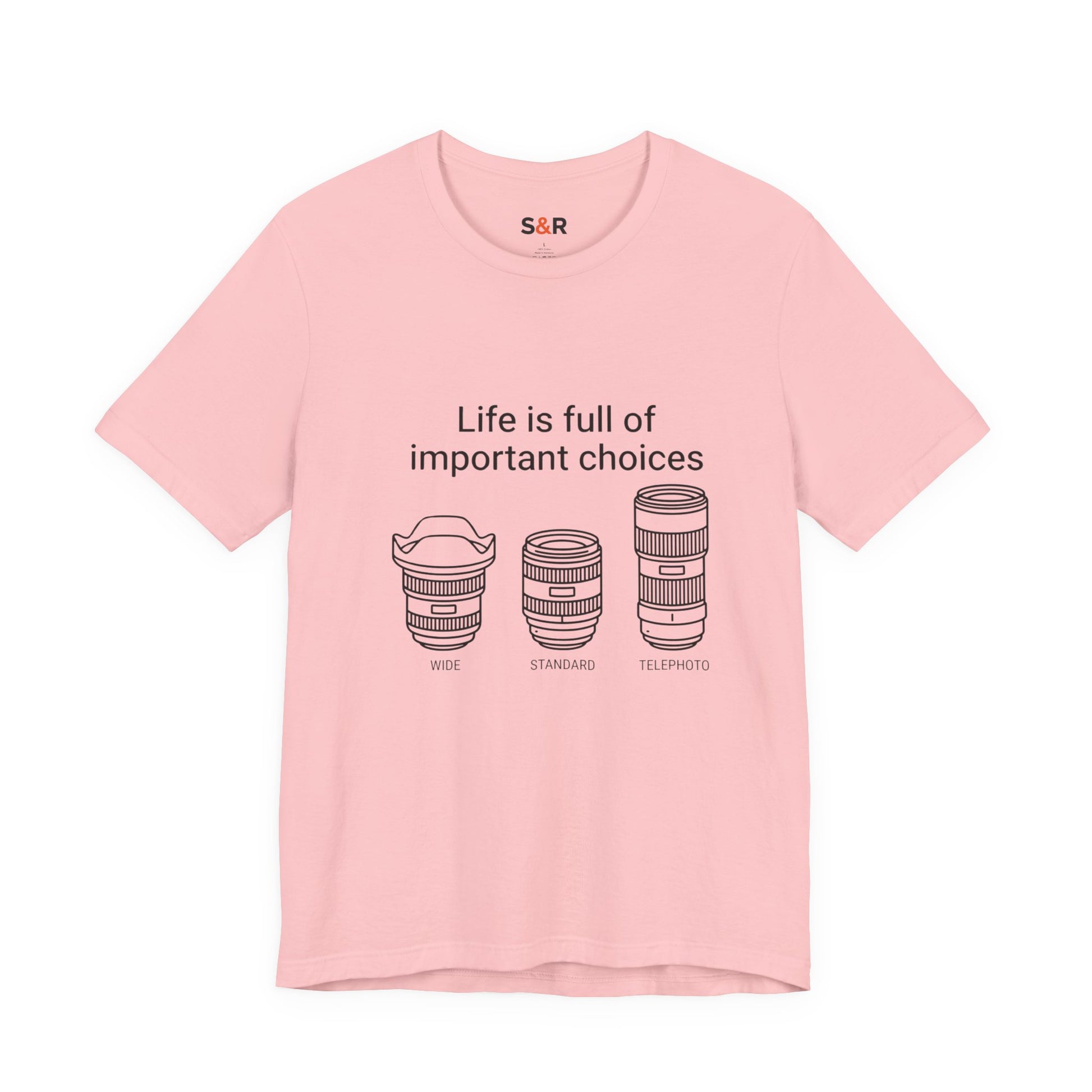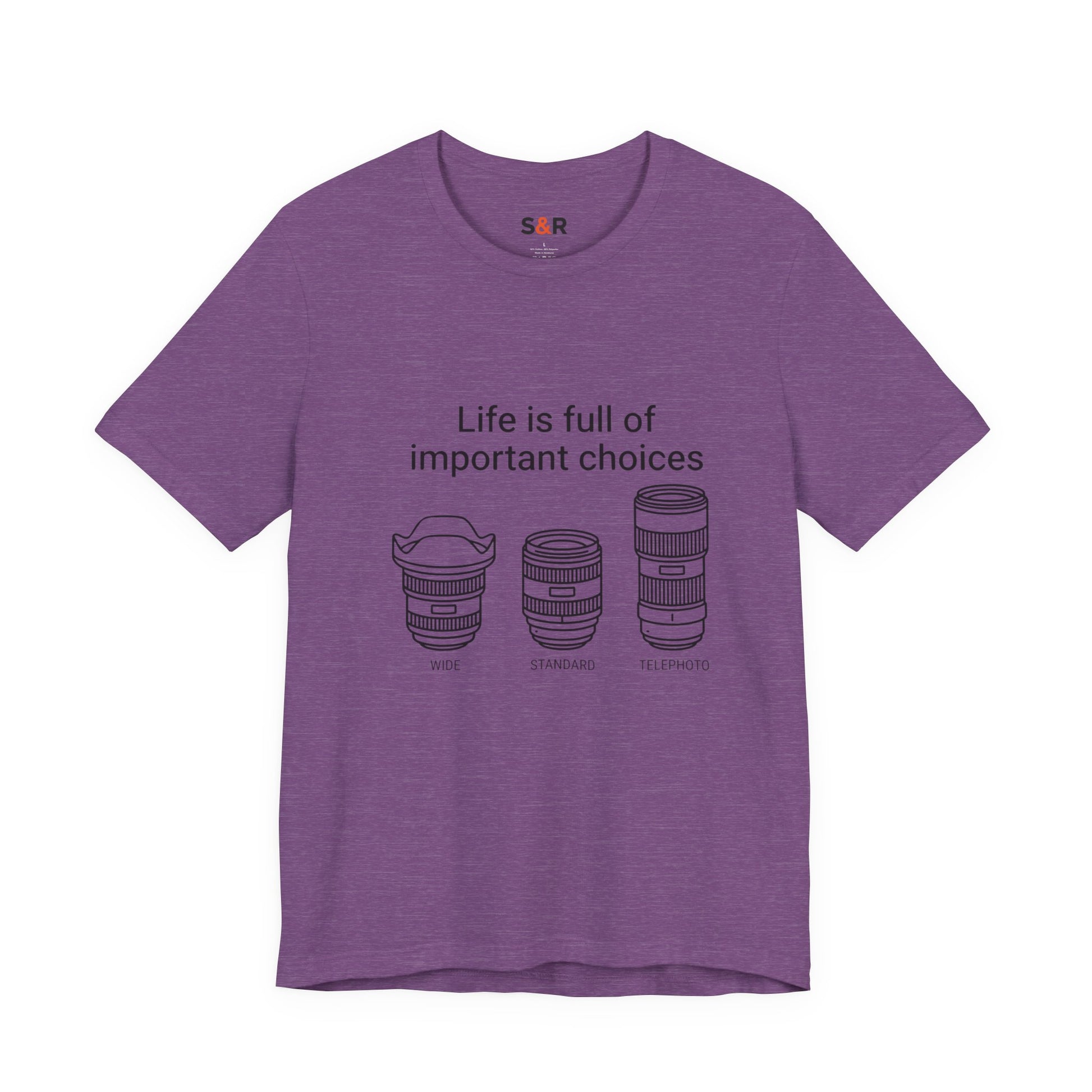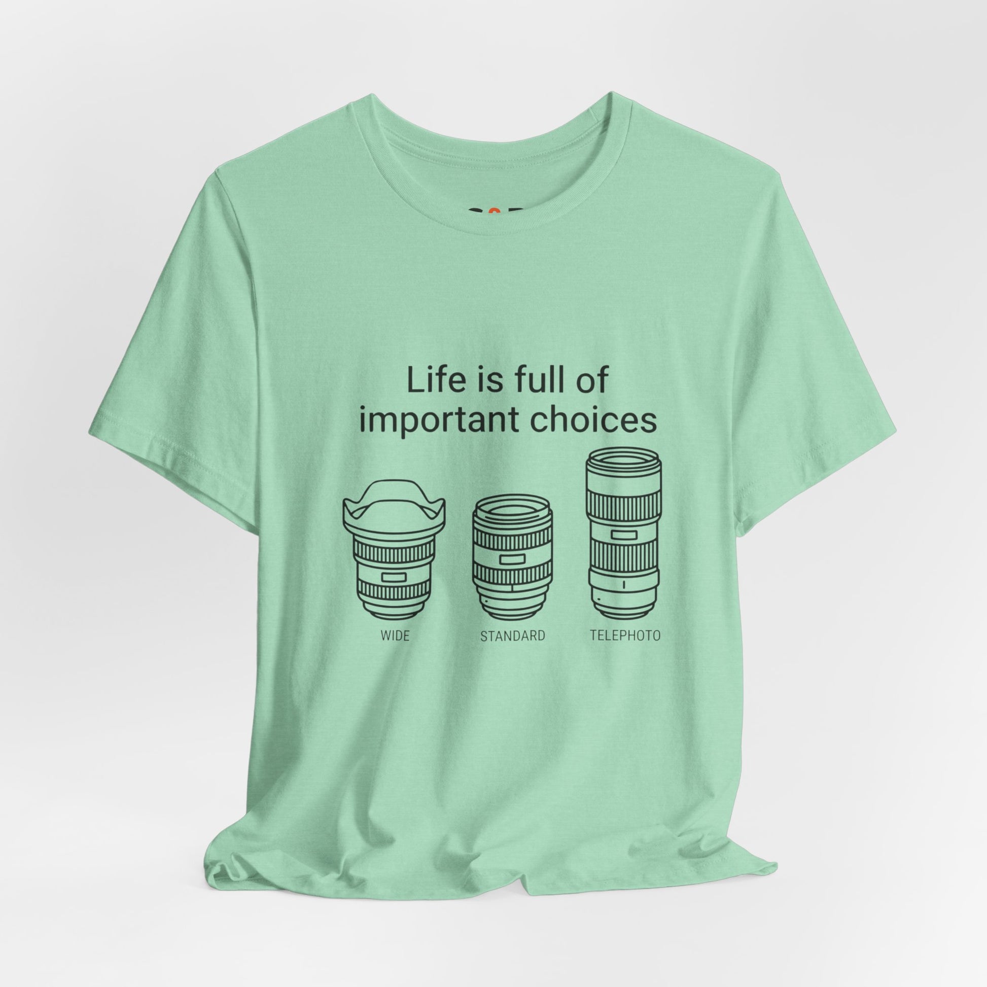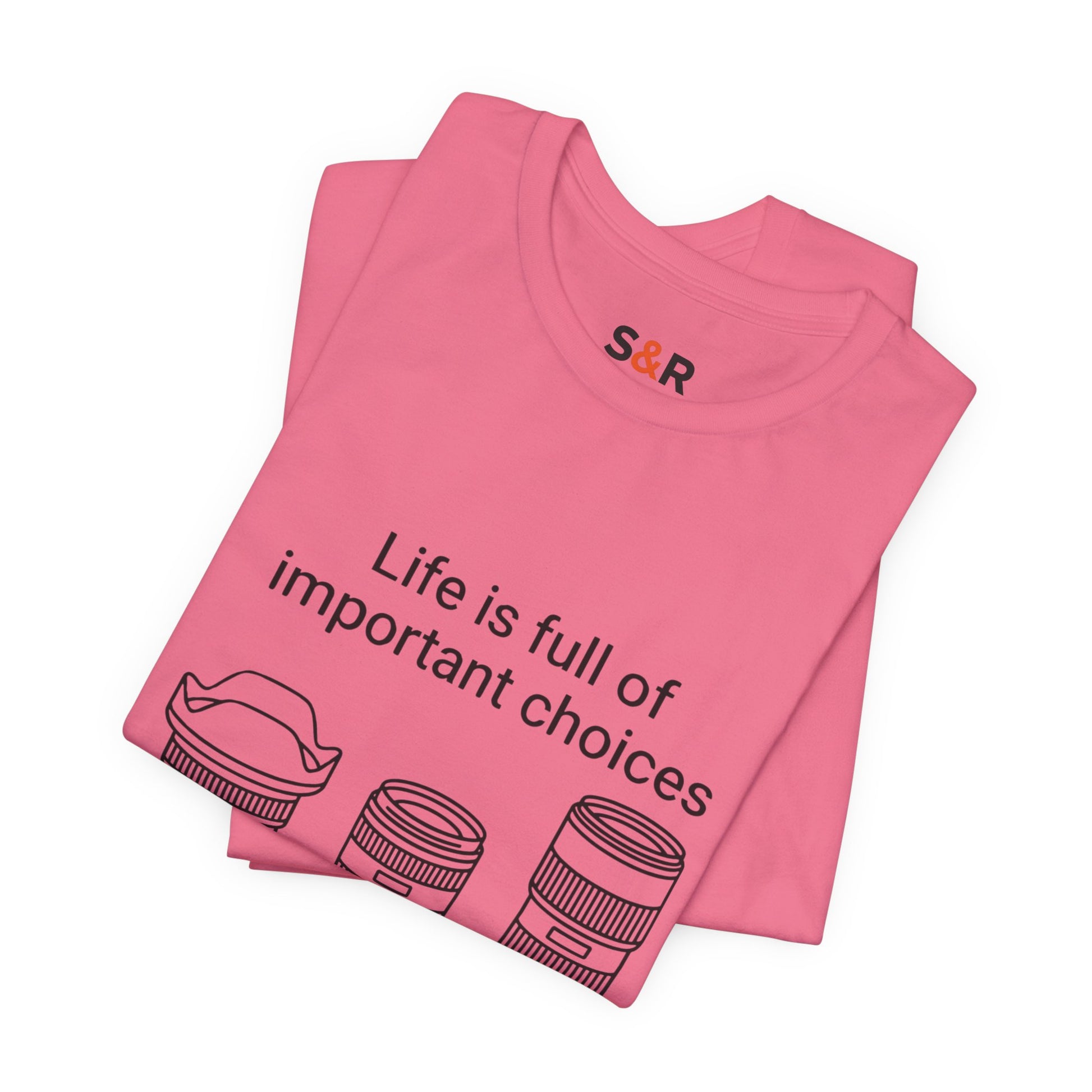 Photography Lens Tee — "Life is full of important choices" Graphic T‑Shirt